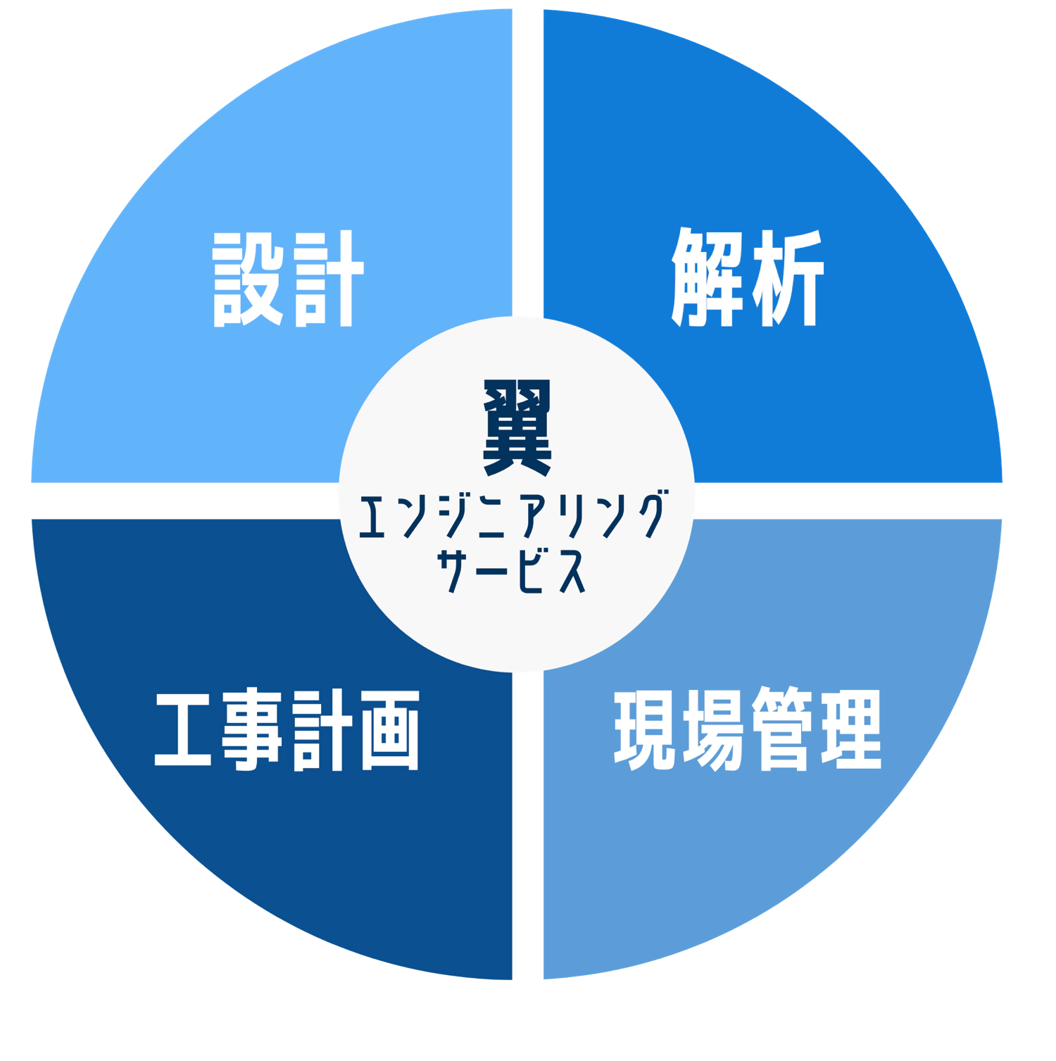 翼エンジニアリングサービスは、設計・解析・工事計画・現場管理まで、プラント設備に関する幅広い技術支援を一貫して手がける会社です。 社会インフラを支える分野において、配管・装置の設計から、構造解析、施工現場への対応まで、多様なニーズに応えています。 社内連携による対応力と、実用性を重視した設計、そして若手も成長できる柔軟な体制を強みに、私たちは“現場に強い技術パートナー”として価値を提供し続けています。