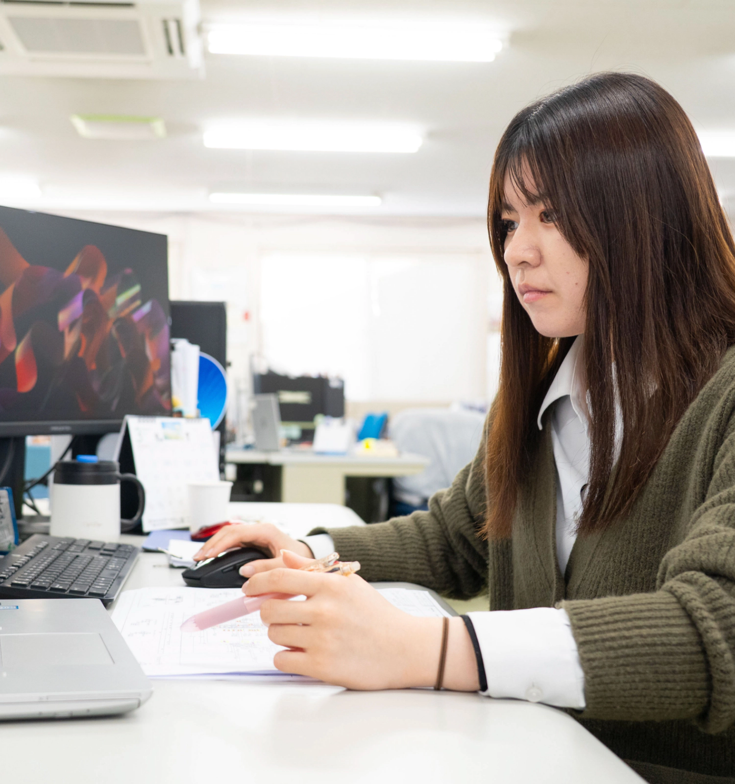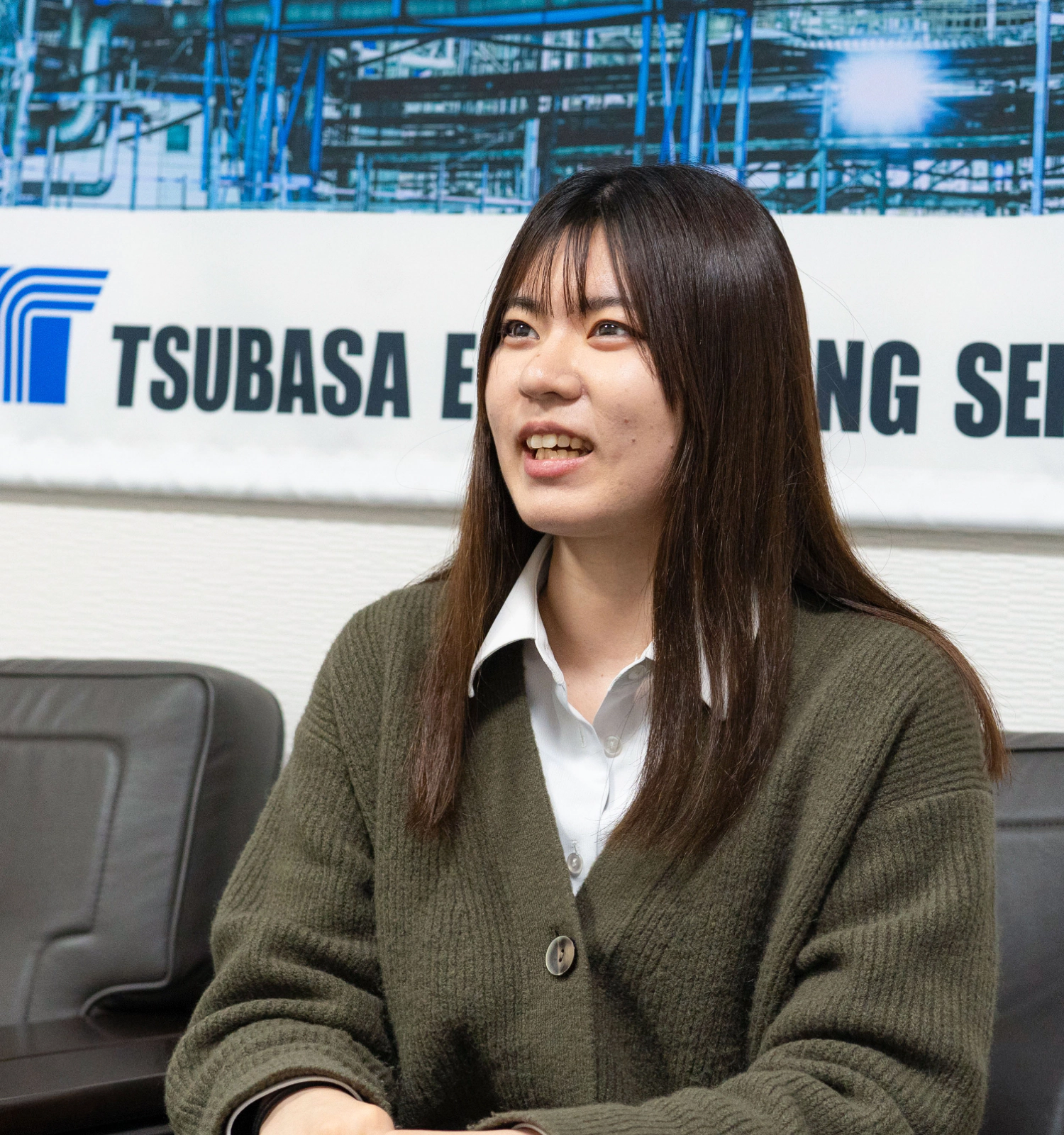 私が就職活動を始めたとき、「大学や短大で学んだ専攻とはまったく別の分野でもやっていけるところはないかな」と考えていました。実は高校時代は理系クラスでしたが、短大では経済を学んでいたので、入社前は配管設計や解析の知識はほとんどありませんでした。そんなときに翼エンジニアリングサービスの求人を見つけ、「未経験でもしっかり研修するので大丈夫」「理系・文系に関係なく、ゼロから技術を身につけられる」という言葉に惹かれたんです。