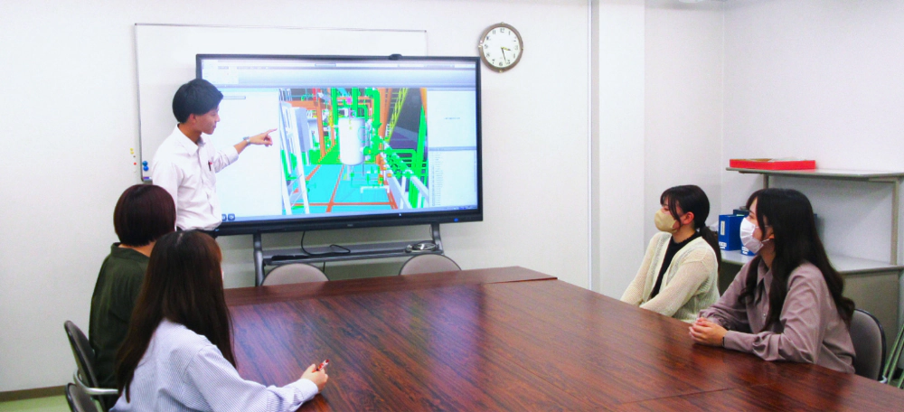 ビジネスマナーや業界基礎、CAD操作などを学ぶ研修からスタート。社内外の講座を組み合わせ、初めての方でも無理なく業務に慣れていける体制です。配属後もメンター制度を通じて、先輩社員が日々の業務をサポートします。